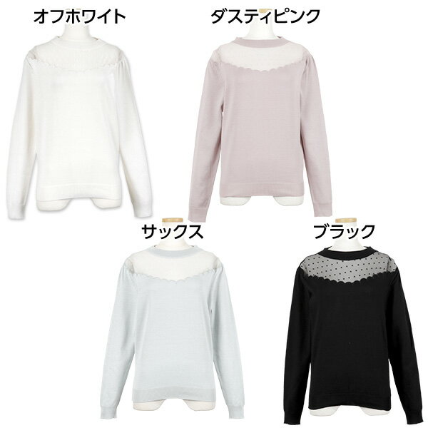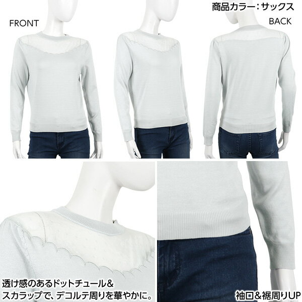 送料無料☆ セクシーなのに上品☆透け感素材でデコルテ美人!ドットチュール&スカラップ☆ハイゲージニットトップス/ レディース トップス ニット セーター 長袖 冬 秋 クルーネック [C3113]【入荷済】【メール便】 シースルー