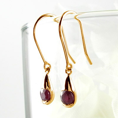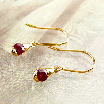 【10%OFF】ルビー フックピアス 18k 揺れる レディース 7月 誕生石 一粒 ドロップ ペアシェイプ つゆ ブラ 18金 k18 ゴールド