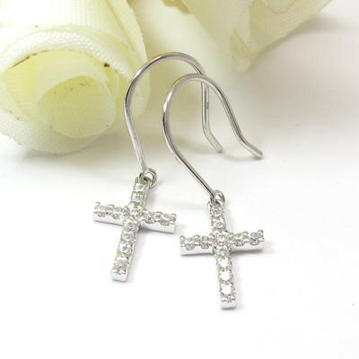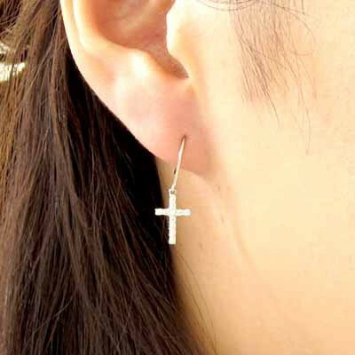人気のクロスをモチーフにしたダイヤモンドフックピアス。