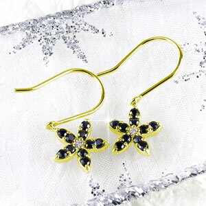 フラワーモチーフのブラックダイヤモンドフックピアス。