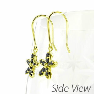 【10%OFF】ブラックダイヤモンド フックピアス 18k 揺れる レディース ダイヤモンド フラワー 花 ゆれる ブラ 18金 k18 ゴールド 0.3カラット