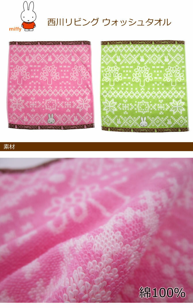 【5%OFFクーポン】【スーパーセール 期間限定 10%OFF】ミッフィー ハンドタオル タオル ウォッシュタオル 手拭き ハンド ウォッシュ 西川 西川リビングキャラクター パイル 綿100% ハンカチ はんかち メール便