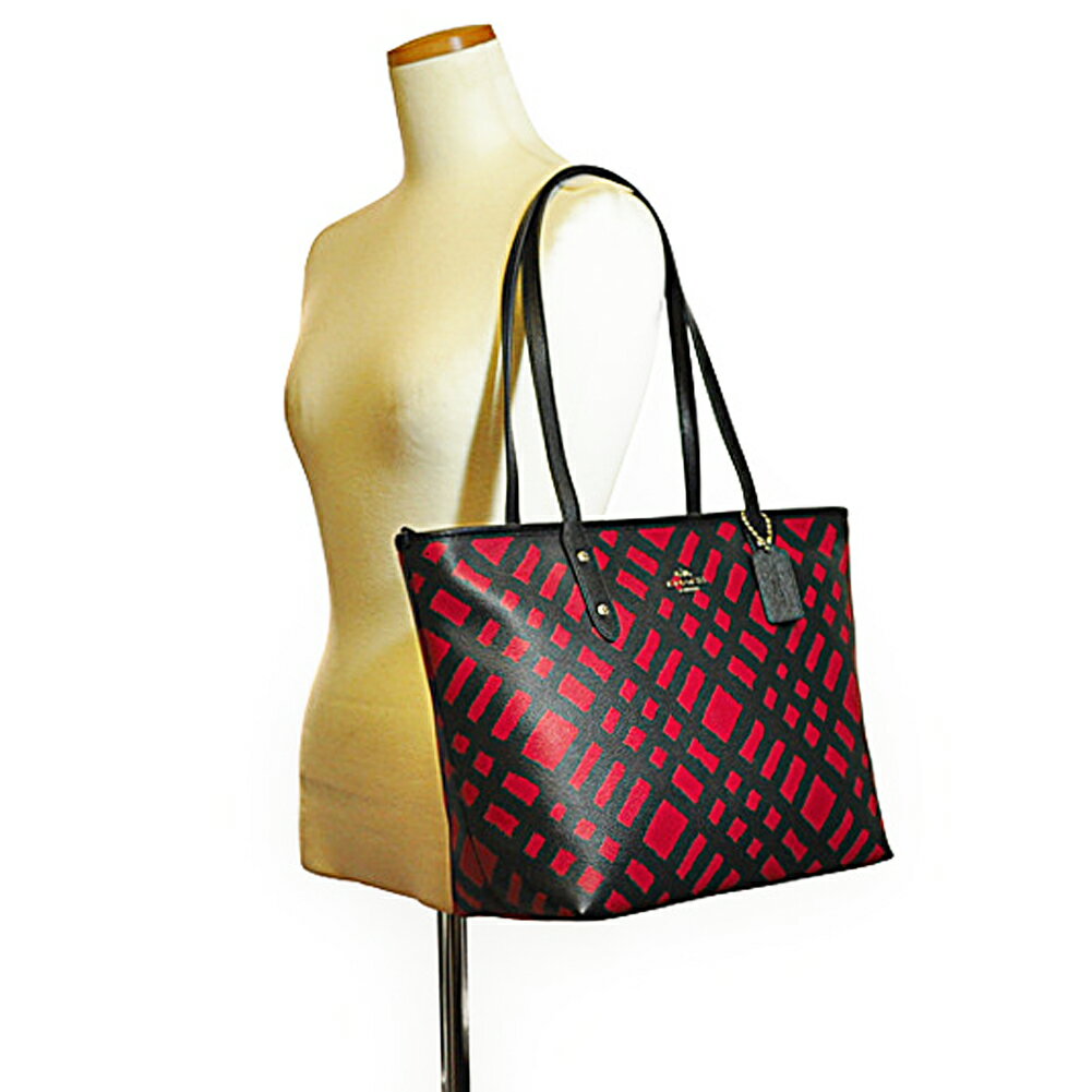 コーチ トート バッグ COACH F22248 SVMRT ワイルド プレイド PVC シティー ジップ トート レッド/ブラック